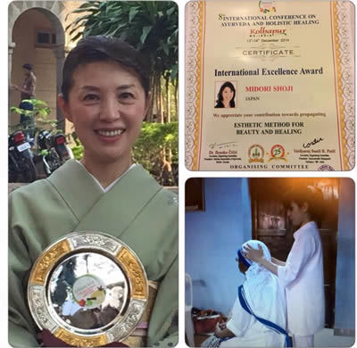 第2回アーユルヴェーダ & ホリスティックヒーリング国際会議にて「国際賞」を受賞 2014年12月インド / コラプールで行われた第2回アーユルヴェーダ & ホリスティックヒーリング国際会議にて世界美生アカデミーの代表理事 庄子みどりが日本代表として「国際賞」を受賞致しました。 |