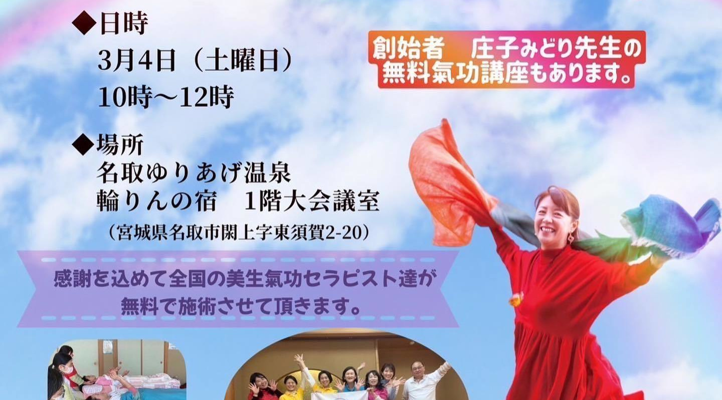 「美生氣功無料体験イベント」が宮城のゆりあげ地区で開催されます。